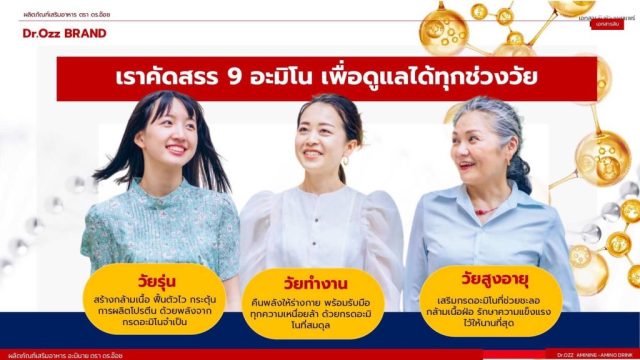 • 💼 วัยทำงาน: เน้น “คืนพลัง” พร้อมรับมือความเหนื่อยล้าสะสม ด้วยกรดอะมิโนที่ช่วยปรับสมดุลร่างกายและสมอง